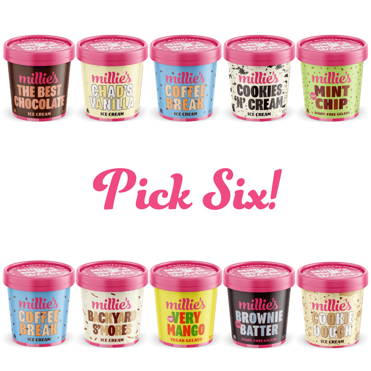 Build your dream lineup with six handpicked pints, mixing timeless favorites, bold indulgences, and can’t-miss flavors into one perfectly curated box.